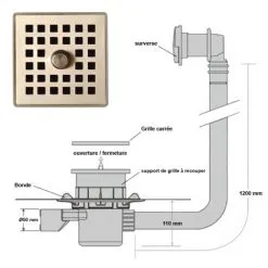 Bonde Isotanche Sortie Horizontale – Grille Carrée – Lazer – Film 1200x1200mm